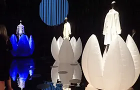 El textil se transforma en una superficie suave y la ligereza propia del aire ofrece un impacto visual extraordinario cautivando la mirada del público.